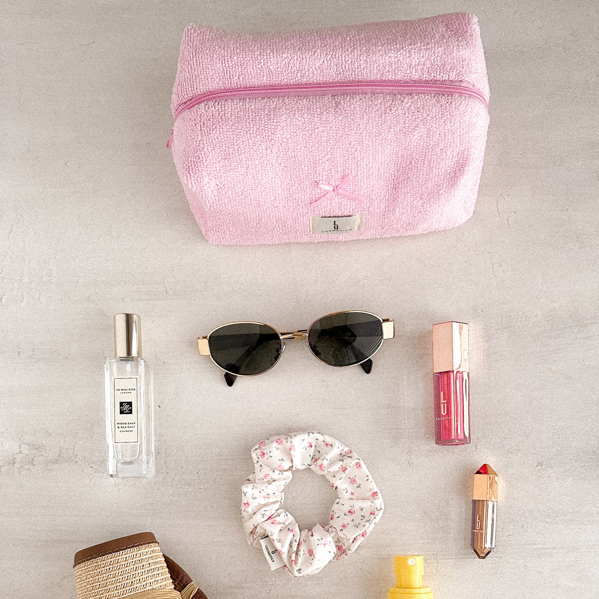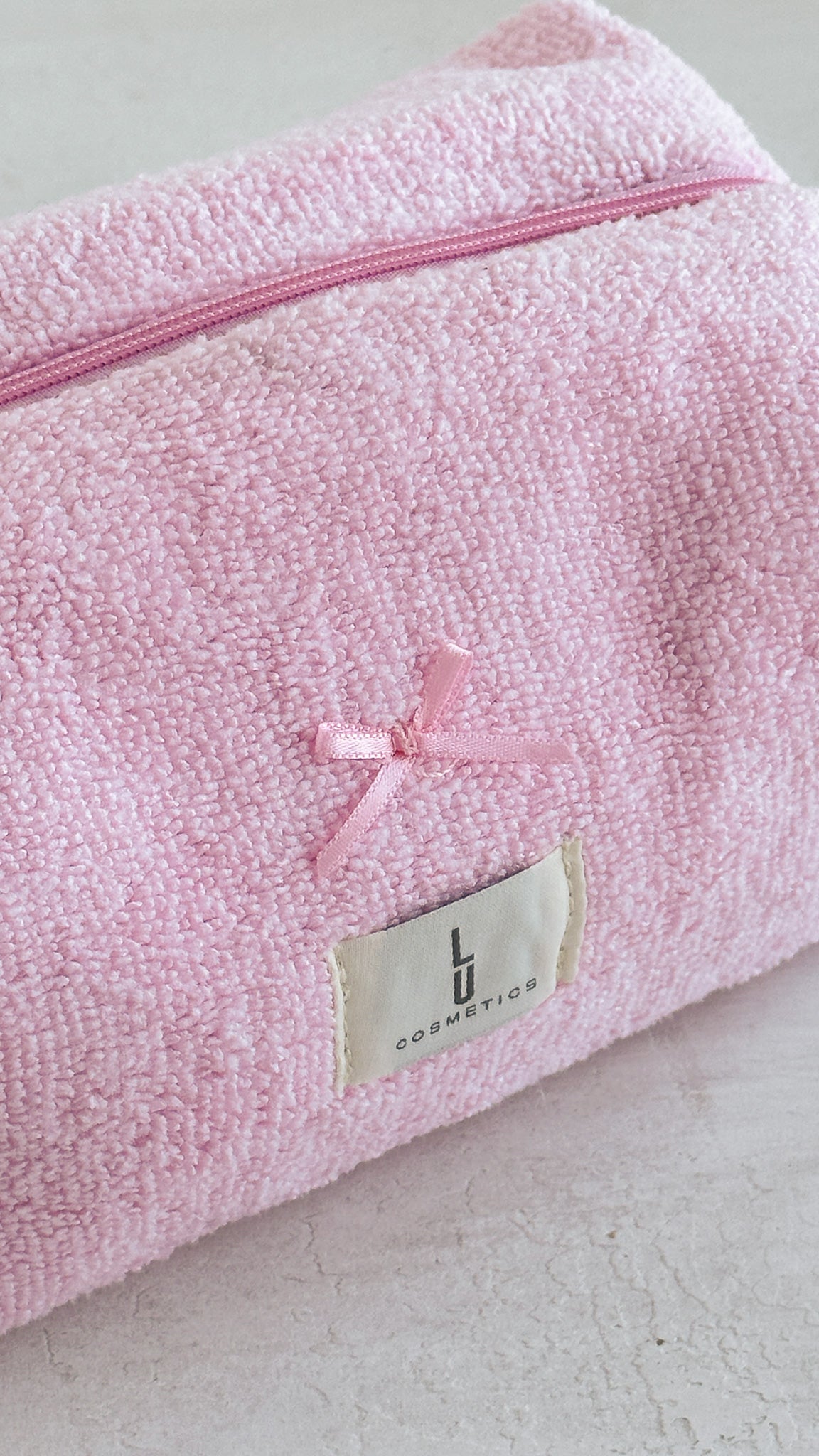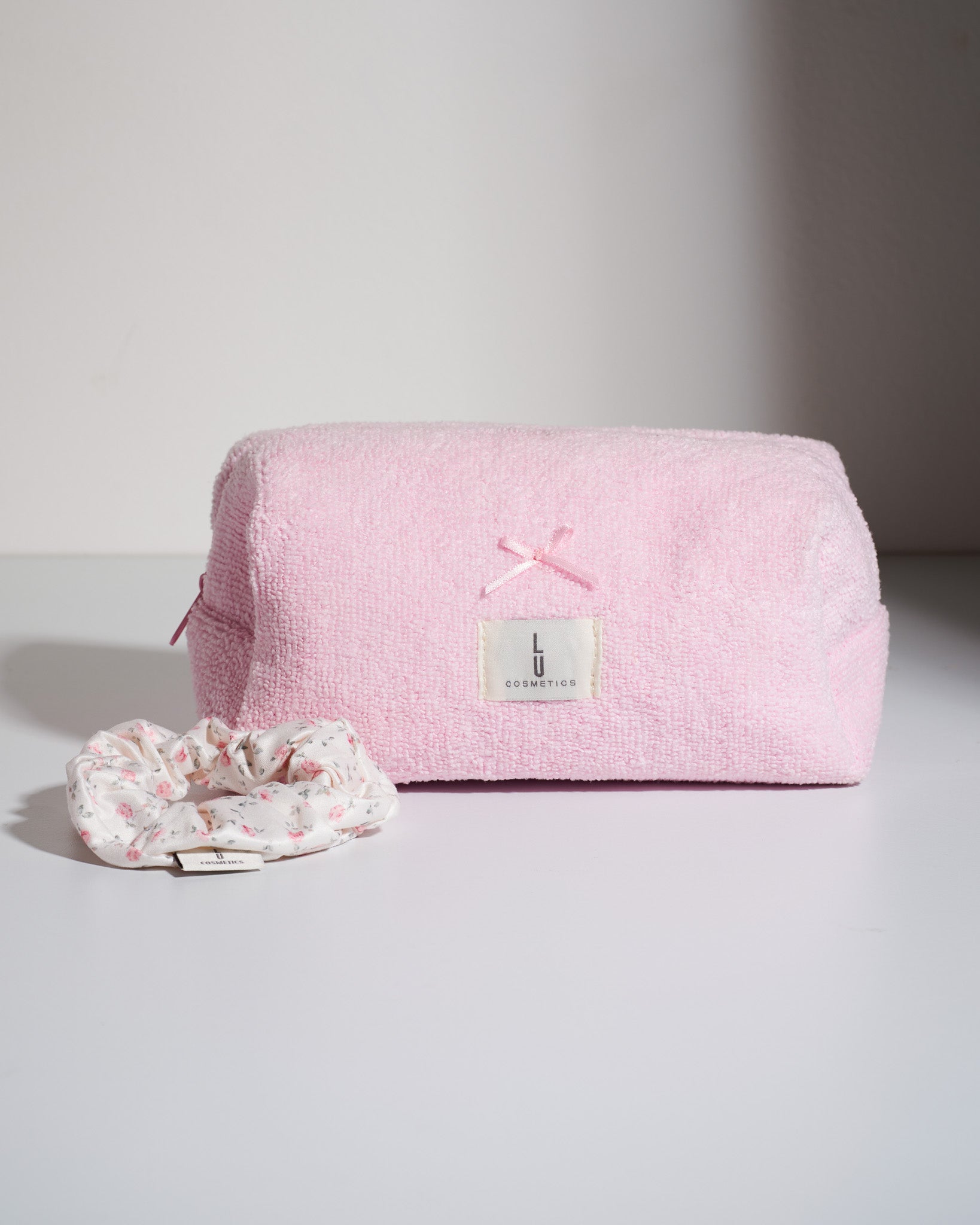 Tu cosmetiquera favorita con nuevo tono, de toalla, rígida. Incluye scrunchie del mismo tono. Ideal para organizar, guardar o llevar contigo. Edición limitada — se acaba rápido.