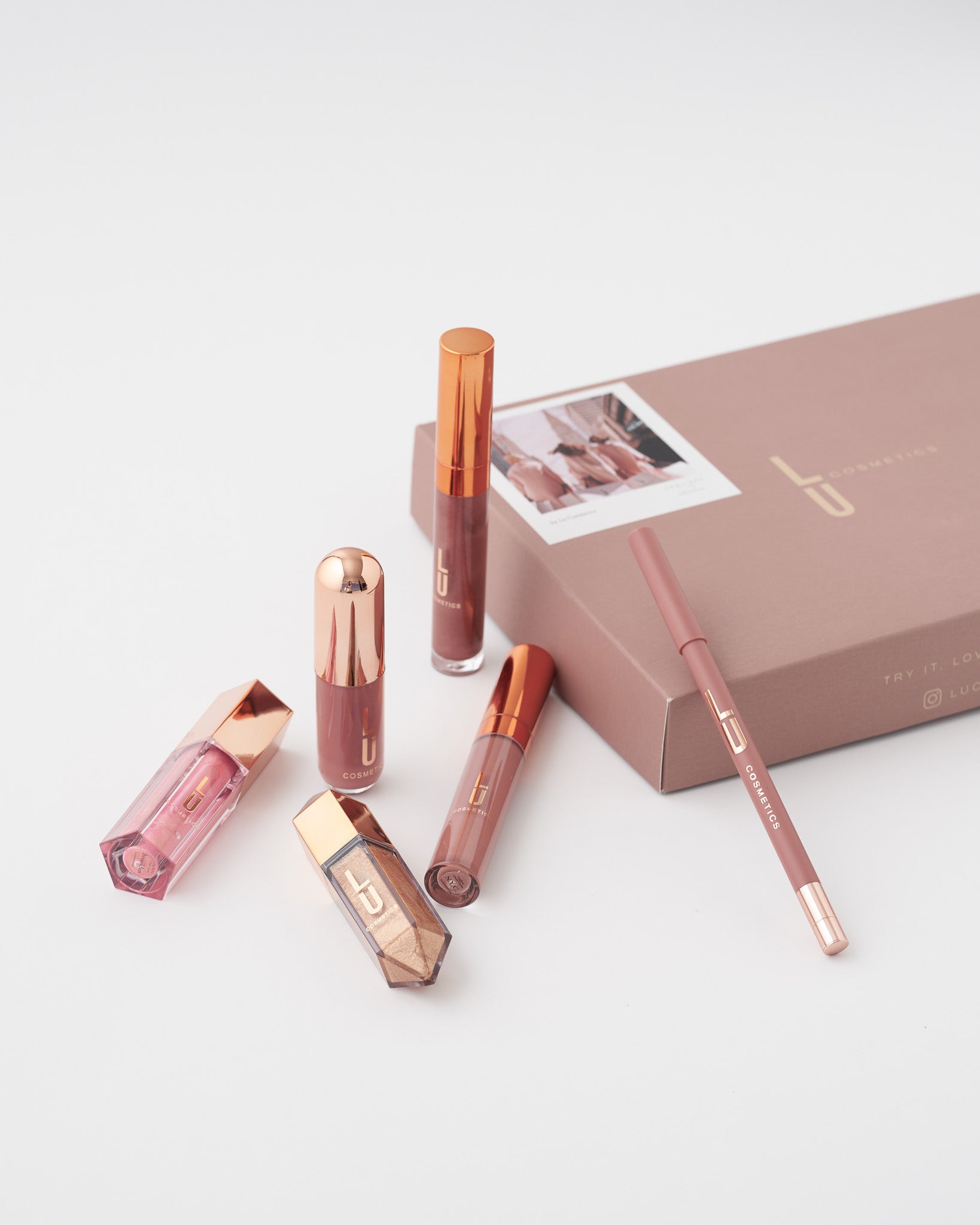 6 tonos glamurosos y cremosos en rosa y dorado — para labios que lo dicen todo. Incluye 5 glosses + 1 lip liner con el espíritu de Nueva York.